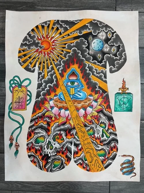 Tattoos can be anything. Memory marks, secret symbols, something tough or something cute. Our soft fleshy bodies can carry wounds that tattoos may bring beauty and help encourage confidence.
